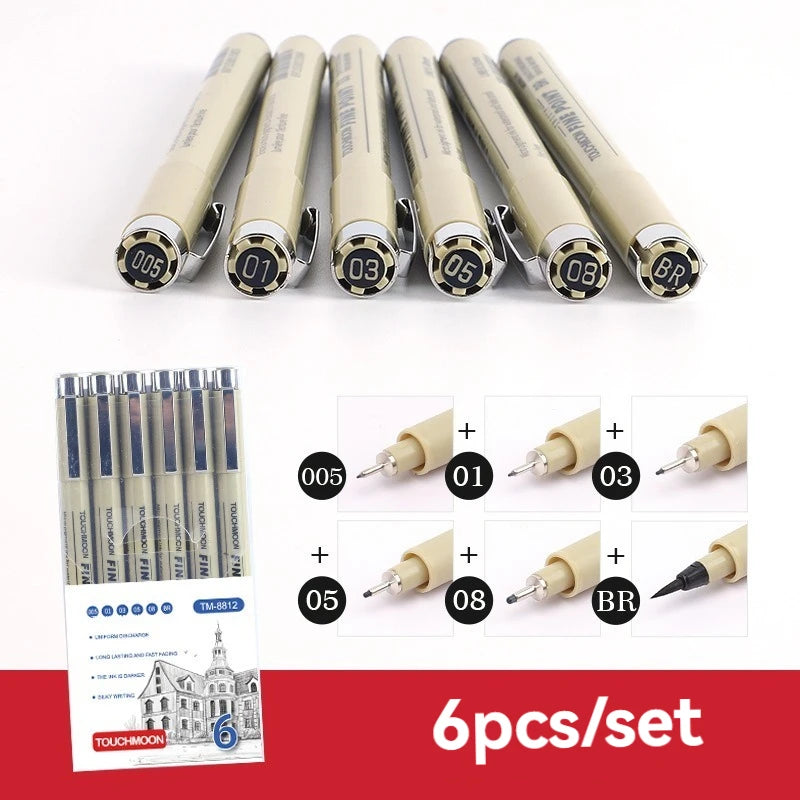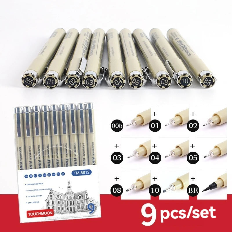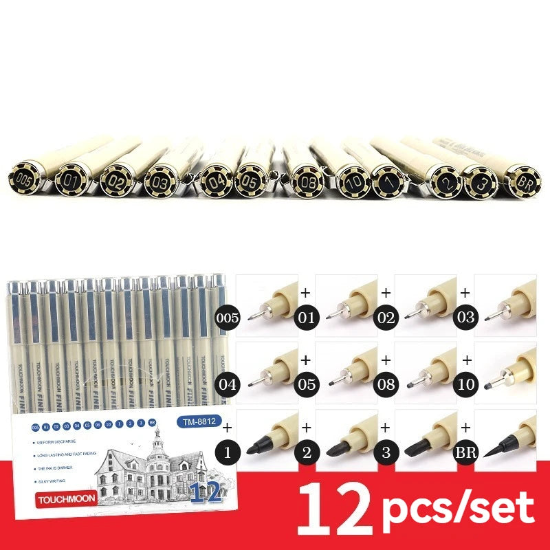 12 Tip Pigment Liner Micron Ink Marker Pen for Manga Draw Sketching Needle Pen Hook Line Pen Sketch Stationery Set Art Supplies