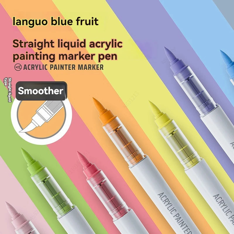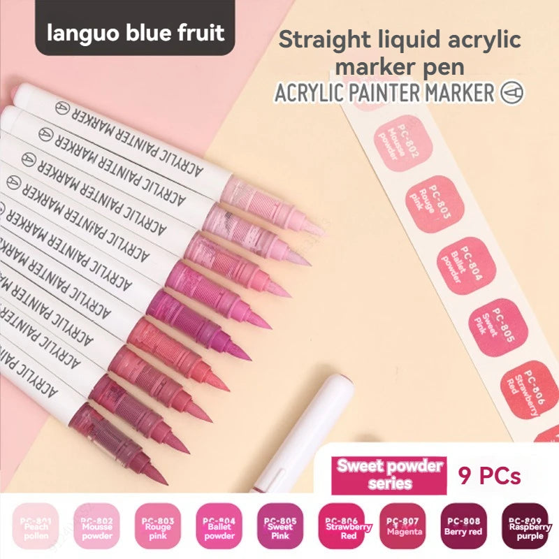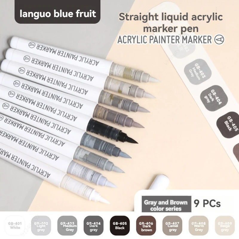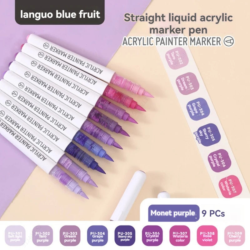 9Colors Straight Liquid Brush Acrylic Paint Pens Set Markers for Rock Painting Wood Canvas Stone DIY Crafts Making Art Supplies